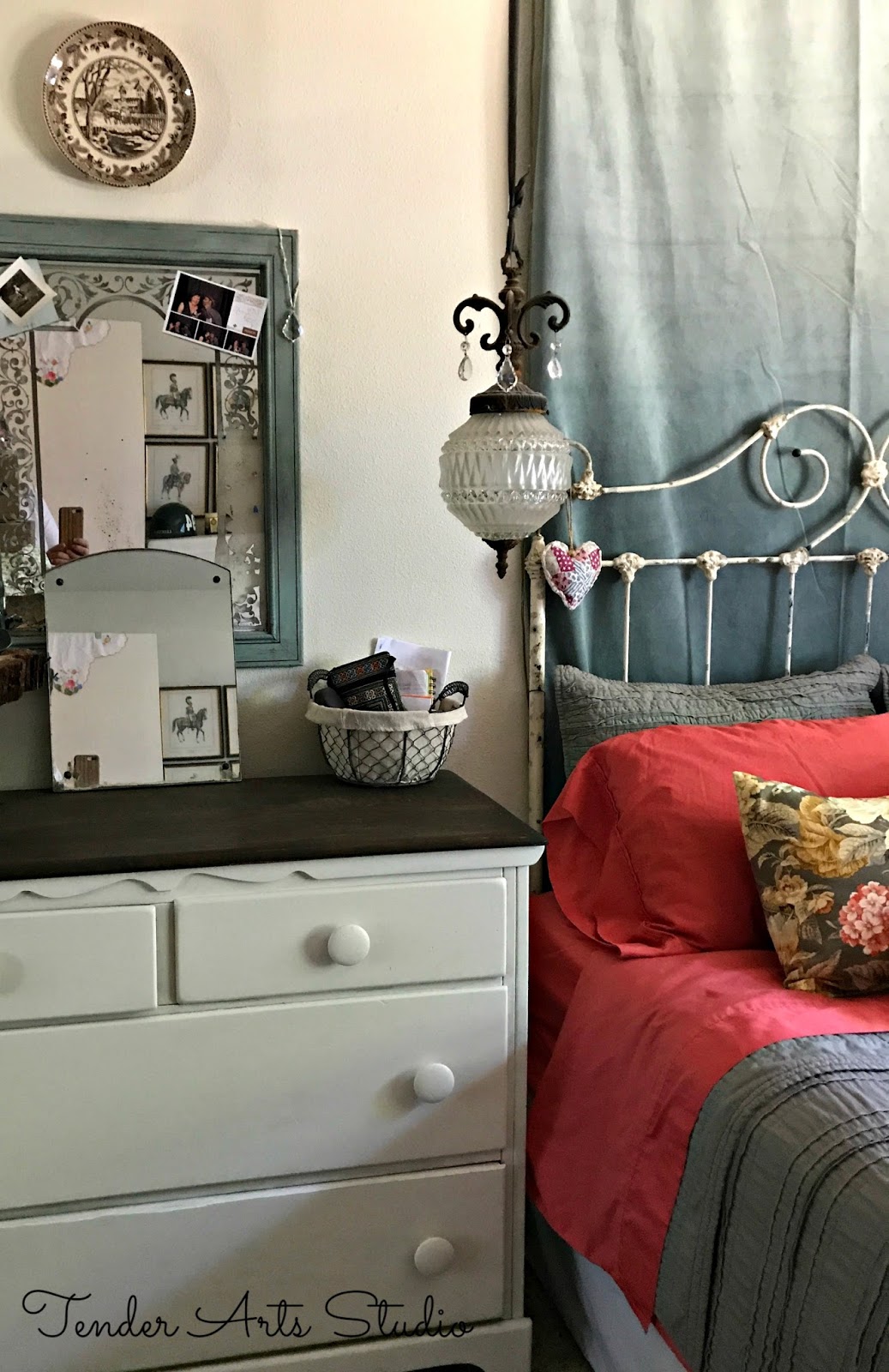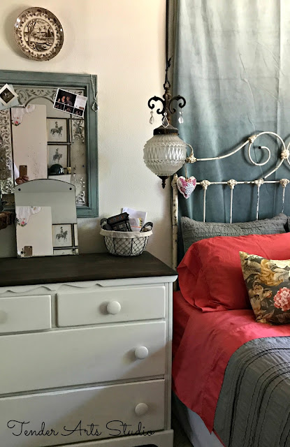 While we only lived here for two years, I did do my best to make it a true home for us. Not long after we moved in, Pete traveled to Hamburg to visit his son, Nick. While he was gone, I decorated our bedroom to surprise him when he got home. He had me beat on the surprise department, though, because he brought home an engagement ring! Maybe that’s all part and parcel of why this bedroom has been so special to me.