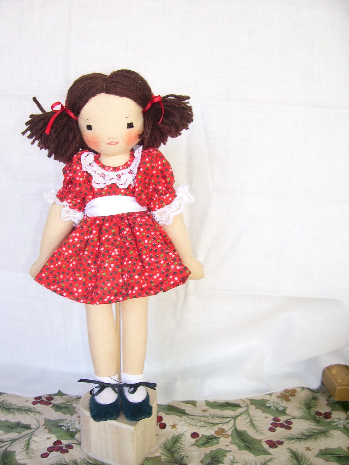 Whew, Tender Arts has one dolly to offer on Etsy! I was getting worried about having anything to sell this month! It took me all week to make this doll’s dress and shoes. That’s how it goes, I guess. The clothes always require more handstitching so it just takes longer.